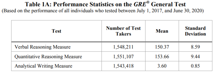 Verbal은 분야마다 차이가 크지만 최소 150은 넘어야 점수로서 의미가 있다.