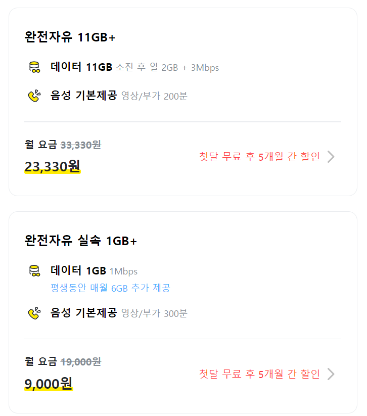 이럴 바엔 23,330원을 내는 11GB요금제를 유지하는게 낫겠다는 생각이 들어 변경하지 않았고