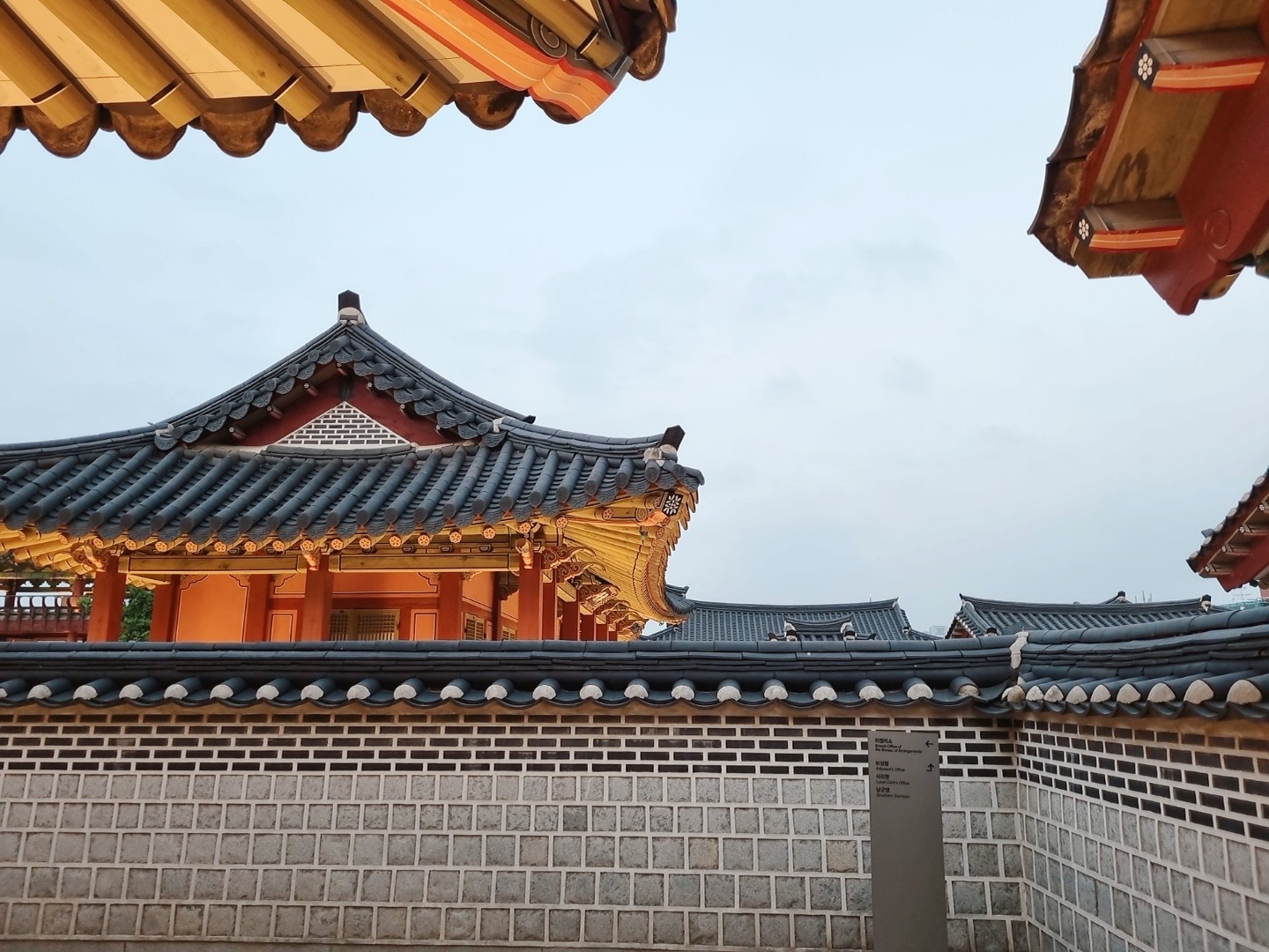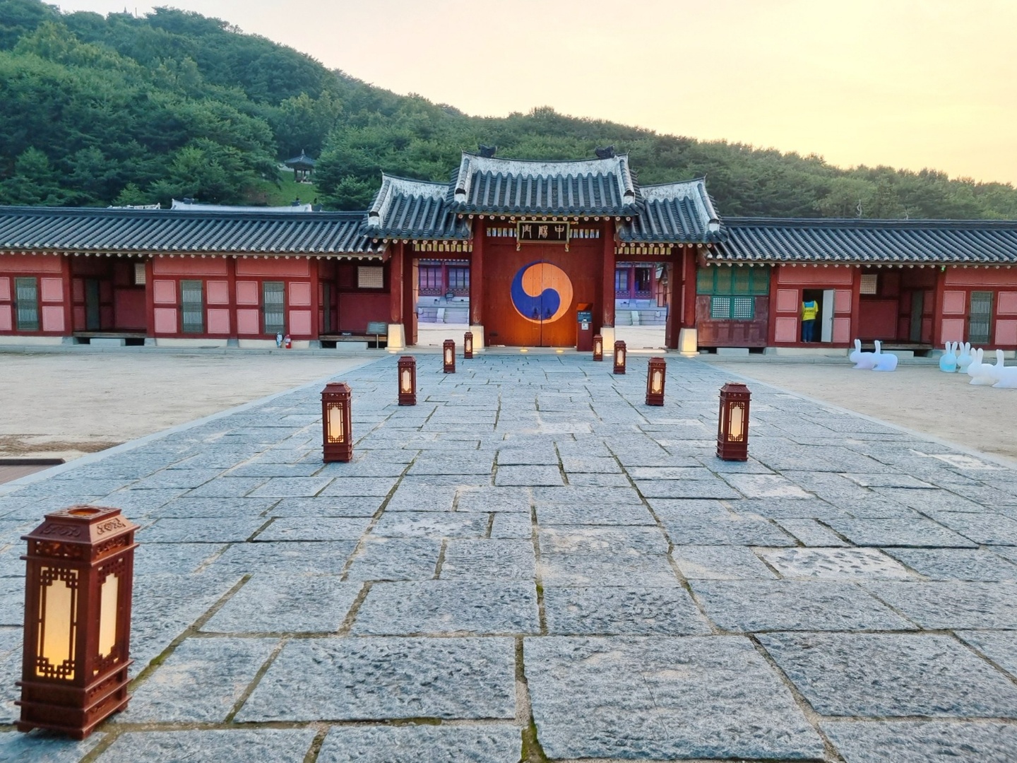 해가 지는 무렵이라 노을과 행궁이 잘 어울렸다