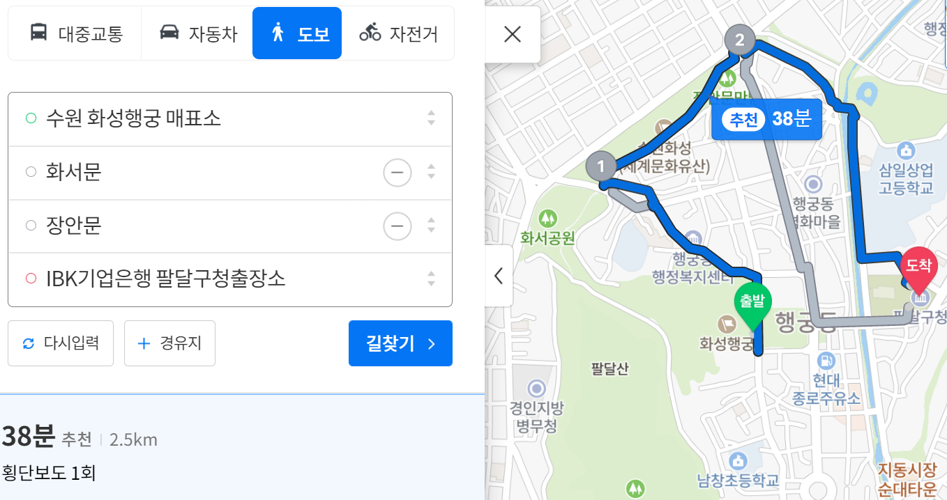 통닭거리에서 화성행궁까지 걸어갔는데